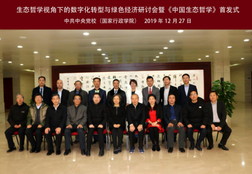2019年12月27日在中央党校召开的“数字化转型与绿色经济”研讨会暨《中国生态哲学》首发式上,中央政策研究室原副主任、中国国际经济交流中心副理事长郑新立,中央党校原副校长徐伟新,中央党校(国家行政学院)社会和生态文明教研部主任龚维斌,中国辩证唯物主义研究会副会长兼秘书长杨信礼,中央党校出版集团总经理崔宪涛,广东省澄宇生态伦理研究院执行院长田丰和秘书长胡文迪,中国生物多样性保护与绿色发展基金会秘书长周晋峰,林源创恒集团董事长伍向群及中央党校的生态文明教研部教师部、进修部学员和相关专家学者企业家和媒体记者出席了会议并作了深入交流。