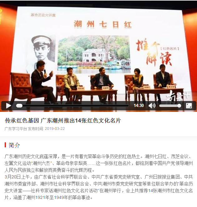 传承红色基因,弘扬红色精神——潮州红色文化名片成为社科普及新品牌