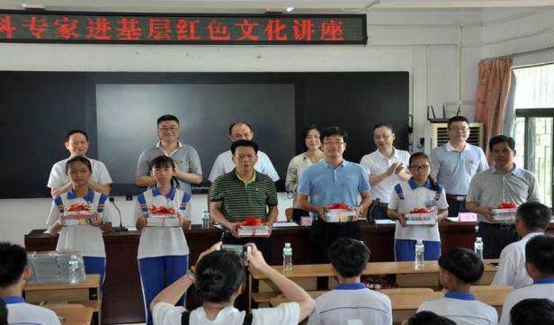 向登塘镇、红色文化村世田村、登塘中学赠送红色文化宣传资料和社科书籍