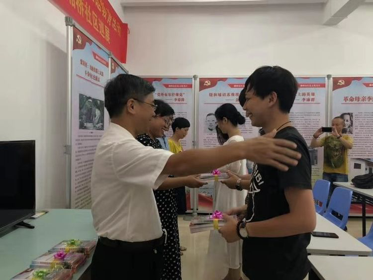 向社区群众赠送红色文化宣传资料和社科书籍