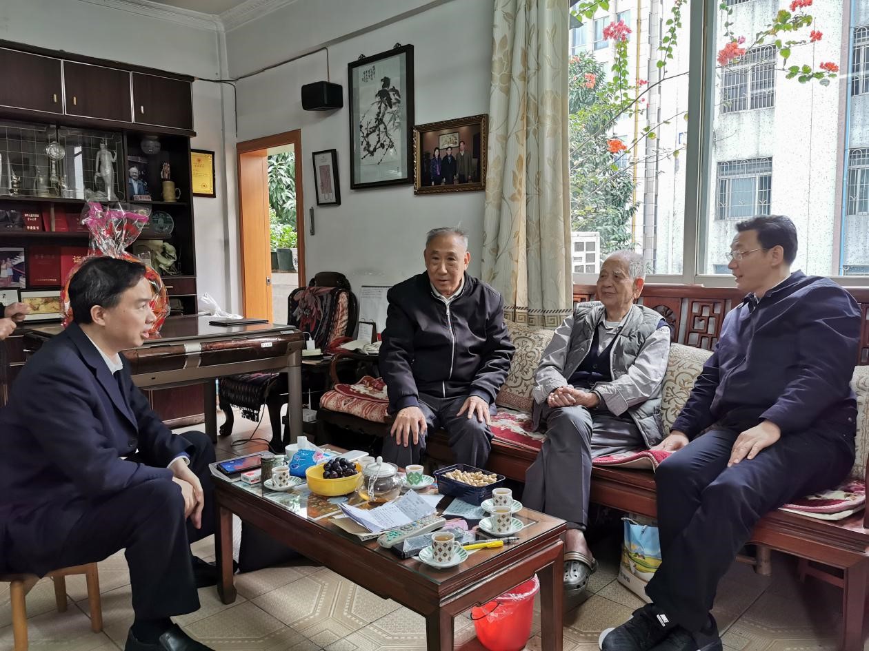 1月17日下午,张知干、李翰敏以及相关部门负责人,登门看望慰问有70年党龄的离休老干部张绰同志。张绰同志是省社科联原党组副书记、专职副主席,今年已92岁高龄。张老的家在5楼,没有电梯,知道我们要来,他早就在门口等候。1月的广州,天气微寒,张老穿着薄夹克、拄着拐杖,笑意盈盈。张知干紧紧握住张老的手,仔细询问他的身体状况以及家庭生活情况,叮嘱他要保重身体,健康长寿。张老行动不便,迫切盼望能解决楼房安装电梯的问题。前段时间,张知干带着省社科联相关部室工作人员和电梯公司实地调研,发现没有预留空间,安装电梯存在相当大的困难。张知干耐心向张老解释情况,并告诉他省社科联将进一步加强与有关部门的沟通协调,共同商量解决方案。张知干告诉张老,“电梯的事,您放心,只要有办法办理,我们就会全力帮助解决”。张知干还向张老了解医保改革后就医情况,听说张老看病和拿药遇到新问题,他嘱咐办公室人事部门尽快向有关部门了解并切实帮助解决好。