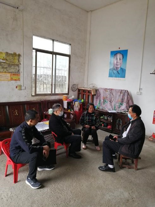会后,工作组分成三个小组,在镇、村干部带领下,立即深入到侯村辖内马榨、钟河、大村、村肚和三洲5个自然村开展入户排查。工作组耐心细致地询问了解贫困户家庭成员、健康状况、致贫原因、收入来源、脱贫状态及诉求愿望等情况,排查“两不愁三保障”“八有”达标情况,与贫困户共同分析新冠疫情影响脱贫成效等因素、研究2020年帮扶计划,对参与了家居环境改善项目的贫困户进行了逐户测量和工程核查核算,并由各小组带队领导给贫困户发放了慰问金。