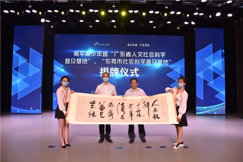 下午,全体党员到省级人文社科普及基地常平镇青少年宫调研,深入了解基地的功能设置、特色课程和活动开展情况。张知干、杨晓棠、曾赠、李夏铭、王炜东、朱默河为基地揭牌。基地分别赠送了一幅东莞本土文创书法作品给省社科联和东莞市社科联。