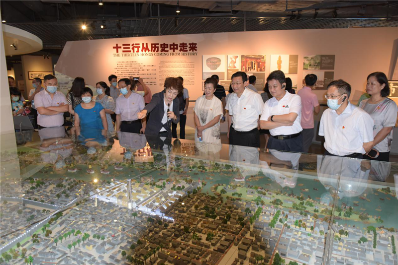 荔湾的传统文化保存得非常好,是一笔非常珍贵的文化宝藏,是广府文化、岭南文化的重要代表。2018年10月24日,习近平总书记来到荔湾区西关历史文化街区永庆坊视察,沿街察看了旧城改造、历史文化建筑修缮保护情况,他强调,城市文明传承和根脉延续十分重要,传统和现代要融合发展,让城市留下记忆,让人们记住乡愁。近年来,广州市荔湾区认真贯彻落实习总书记指示要求,采取“微创改造”的创新理念,大力推进老旧城区改造,使这个文化沉淀深厚的老街区呈现出“老树新芽”式的勃勃生机。全体党员首先来到广州十三行博物馆参观学习。展馆常设“清代广州十三行历史展”和“王恒、冯杰伉俪捐赠的十三行时期文物专室陈列展”。参与博物馆建设的李黎给大家介绍了博物馆的筹建经过,并亲自讲解十三行历史,阐述了粤商敢为人先、包容务实、锐意进取的精神,以及岭南人海纳百川的开放理念,给党员们留下了深刻的印象。
