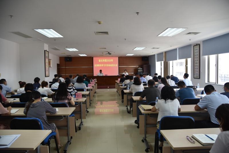 为深入学习贯彻习近平新时代中国特色社会主义思想,推动全面从严治党向纵深发展,根据省委要求和我会的工作部署,7月23日上午,我会召开了2020年纪律教育学习月活动动员大会。省社科联党组书记、主席张知干出席并作动员讲话。省社科联党组成员、专职副主席李敏主持了动员会。省社联党组成员、专职副主席叶金宝、曾赠,党组成员、办公室主任李翰敏,一级巡视员李夏铭、二级巡视员杨小蓉等出席了会议。