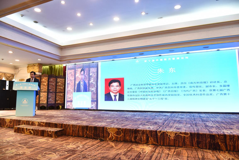广西壮族自治区社会科学界联合会党组书记、主席朱东在第十届中国南方智库论坛上作主题发言:发挥“联”的优势 助力乡村振兴