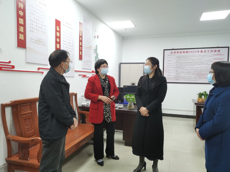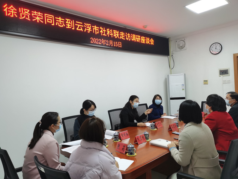 调研期间,云浮市社科联主席岑晓玲汇报了市社科联过去一年的工作情况和2022年的重点工作计划。徐贤荣充分肯定了云浮市社科联在课题研究、服务决策、社科宣传普及、社科基地建设等方面取得的成绩,并就今后的工作提出了三点希望:一是要围绕中心服务大局,充分借助“外脑”的智力资源组建我市新型智库,根据市委市政府中心工作开展课题研究、决策咨询,为实现云浮高质量发展提供理论支撑和决策参考。二是要坚持以人民为中心的发展思想,充分发挥好社科普及基地的主阵地作用,打造一系列满足人民群众美好精神文化生活新期待的社科普及精品活动。三是要担当作为,推进改革创新,抓紧抓细抓好市社科联全面深化改革和换届工作,团结引领全市社科界勠力同心推动云浮市哲学社会科学持续繁荣发展,以优异的成绩迎接党的二十大胜利召开。