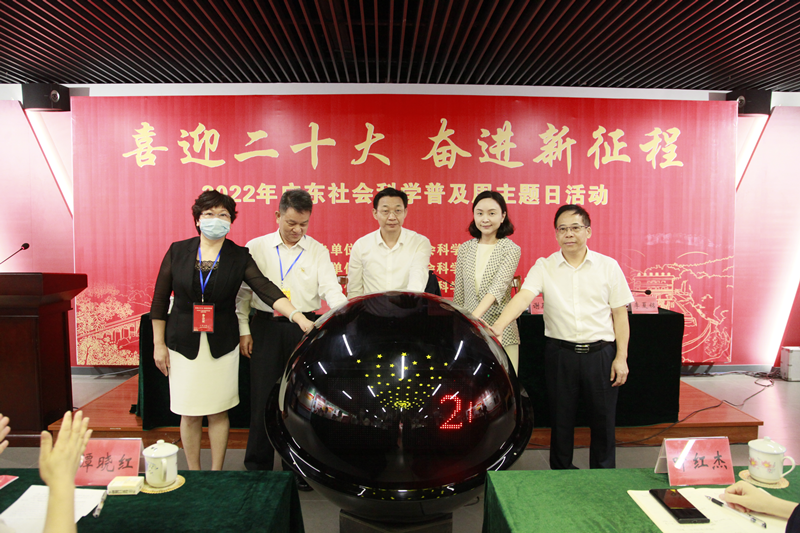 张知干、谢思佳、曾赠、李夏铭、岑晓玲共同启动了本届社科普及周。