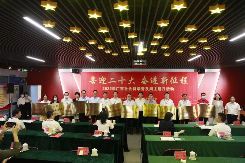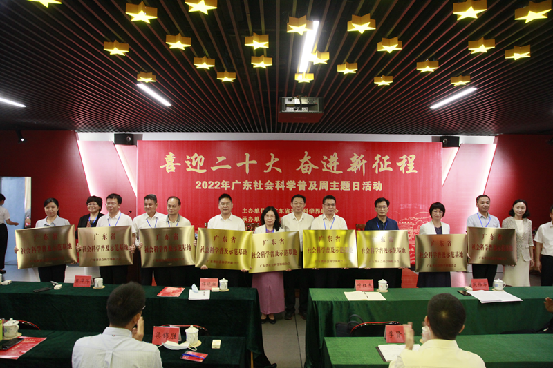 活动现场颁发了新设计制作的广东省社科普及示范基地牌匾。