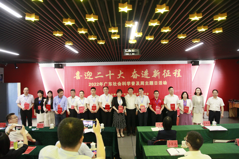 李夏铭宣读了《关于表彰2022年广东省优秀社会科学普及专家、工作者、作品、基地和社会科学普及工作先进单位的通报》。与会领导为优秀社科普及专家、优秀社科普及工作者、优秀社科普及作品作者、优秀社科普及基地和社科普及先进单位代表颁发荣誉证书。