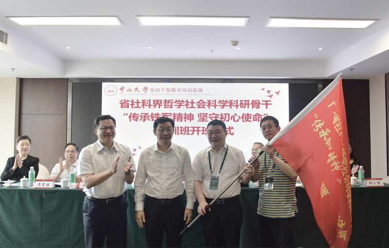 在全党全国豪情满怀喜迎党的二十大胜利召开之际,为深入学习贯彻习近平新时代中国特色社会主义思想,认真学习贯彻省十三次党代会精神,不断巩固拓展党史学习教育成果,提升全省社科界人才队伍政治能力,6月20日上午,全省社科界哲学社会科学科研骨干“传承铁军精神 坚守初心使命”培训班在肇庆正式开班。省社科联党组书记、主席张知干出席开班式并作动员讲话,肇庆市委常委、宣传部部长陈晓建致欢迎辞。省社科联党组成员、专职副主席叶金宝,一级巡视员李夏铭、钱永红、李敏,二级巡视员杨小蓉等参加开班仪式。