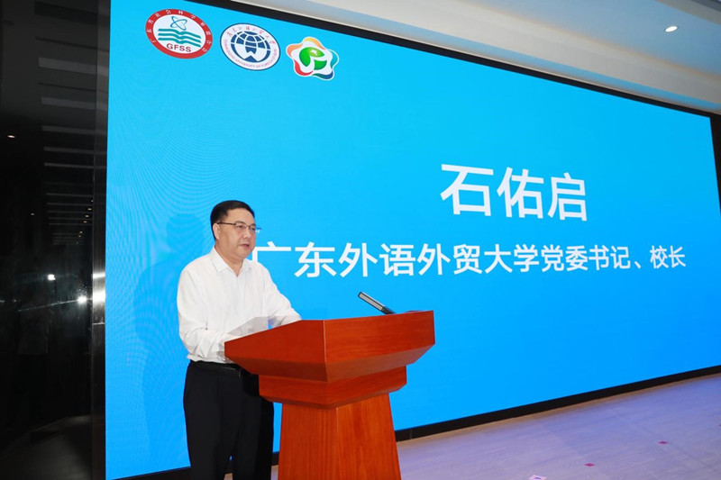 石佑启书记在致辞中代表广东外语外贸大学对张知干、冼银崧等嘉宾出席揭牌仪式表示热烈欢迎,对省社科联和黄埔区委区政府长期以来对广外的关心和支持表示衷心的感谢和崇高的敬意。他简要介绍了广东外语外贸大学牢记习近平总书记关于“外语院校大有可为”的殷切嘱托,紧密对接全球经济治理、“一带一路”倡议、构建人类命运共同体、粤港澳大湾区建设、区域协调发展等国家和地区发展重大战略需求,奋进新征程、建功新时代实现的新跨越、呈现的新气象。