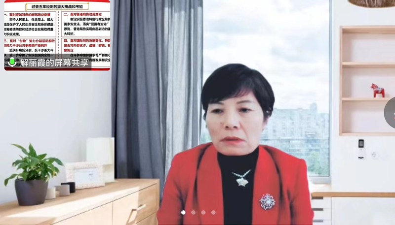 华南理工大学马克思主义学院院长解丽霞教授作了题为《高举中国特色社会主义伟大旗帜 为全面建设社会主义现代化国家而团结奋斗》的辅导报告,从党的二十大的主题与成果、过去五年的工作与新时代十年的伟大变革、开辟马克思主义中国化时代化新境界、以中国式现代化全面推进中华民族伟大复兴、全面建设社会主义现代化国家的目标任务等七个方面对二十大报告进行了深入的解读,大家表示受益匪浅。