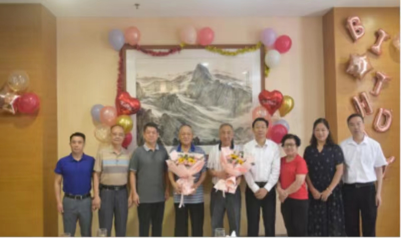 为深入贯彻习近平总书记关于做好老干部工作的重要论述精神,带头弘扬尊老敬老传统文化,8月11日上午,省社科联党组书记、主席张知干与党组成员、专职副主席曾赠,党组成员、办公室主任李翰敏,二级巡视员何方俊等一道为我会满80岁的老领导武岩、李鸿生两位同志祝寿,衷心祝福两位同志生日快乐,健康长寿。