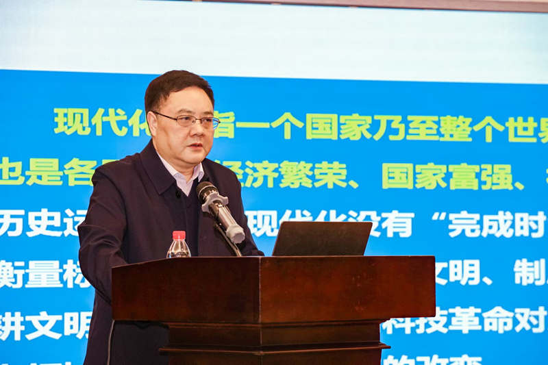 广东外语外贸大学党委书记、省优秀社会科学家石佑启教授以“法治是中国式现代化重要保障的历史、理论与实践逻辑”为题作学术报告,他从中国式现代化的中国特色、法治是中国式现代化重要保障的历史逻辑、法治是中国式现代化重要保障的理论逻辑、法治是中国式现代化重要保障的实践逻辑、适应中国式现代化深化法治领域改革等五个方面进行了阐释。