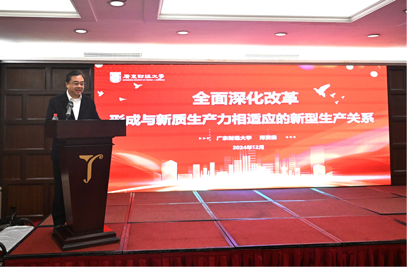 广东财经大学党委书记郑贤操以“全面深化改革形成与新质生产力相适应的新型生产关系”为题作学术报告。他从新质生产力与新型生产关系的理论溯源、形成与新质生产力相适应的新型生产关系的广东实践、构建与新质生产力相适应的新型生产关系的高校担当等三个方面进行了阐释,对习近平总书记关于新质生产力和新型生产关系的重要论述进行了全面理解和深刻阐释。