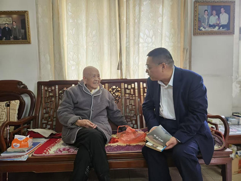 在张老家,李宜航详细了解了张老衣食住行、文化休闲等日常生活情况,认真翻阅了张老的手稿、著作、获奖证书等,看到老人精神矍铄、思路清晰,听到家人介绍张老胃口睡眠等各方面都很好,李宜航非常高兴,并叮嘱家人可适度安排对张老身心有益的户外活动。李宜航向张老介绍了过去一年在省委正确领导下、在省委宣传部的指导下,省社科联坚定不移沿着习近平总书记指引的方向,全面贯彻落实党的二十届三中全会精神,以八个“走在前、做表率”为牵引打造更具活力、更具向心力、更具赋能能力的一流社科联所取得的重大进展。他强调,近些年来,省委省政府高度重视新时代哲学社会科学工作,极大地鼓舞了全省广大社科工作者。春节后,省社科联第九次代表大会即将胜利开幕,省社科联党组将继续带领全会上下提振干事创业精气神,始终保持干事创业的良好精神状态,以“十个加强”配套“五个扶持”为主要抓手,全力以赴推动我省社科事业全面繁荣、走在前列。