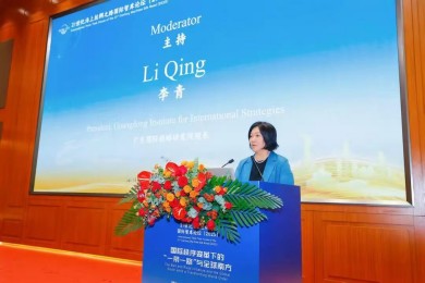 广东国际战略研究院院长李青主持论坛主题发言环节。