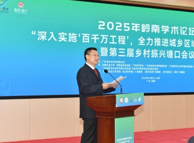 在党的二十届四中全会胜利闭幕,为“十五五”高质量发展锚定战略方向之际,10月25日至26日,2025年岭南学术论坛“深入实施‘百千万工程’,全力推进城乡区域协调均衡发展”暨第三届乡村振兴塘口会议在阳西县举办。广东省社科联党组书记、专职副主席李宜航,华南农业大学党委书记李凤亮,阳江市委常委、统战部部长王光飞,阳西县委副书记、县长黄家新出席会议并致辞。国务院参事、中国农业大学教授何秀荣,广东省社会科学院原副院长、广东省哲学社会科学重点实验室--海洋强国建设实验室执行主任向晓梅,阳西县委书记张秀洁等出席会议。广东省社科联党组成员、办公室主任李翰敏主持开幕式。